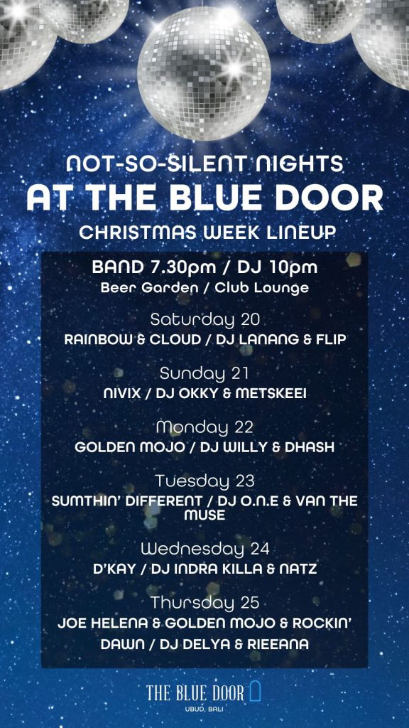Doesn’t matter if you’re on Santa’s naughty or nice list because either way, we’re gearing up for a sensational Not-So-Silent Festive Season at The Blue Door in Ubud! We’re transforming our venue into the island’s most energetic holiday hotspot, where the celebration runs non-stop across our Beer Garden and Club Lounge from December 20th through December 31st New Years.