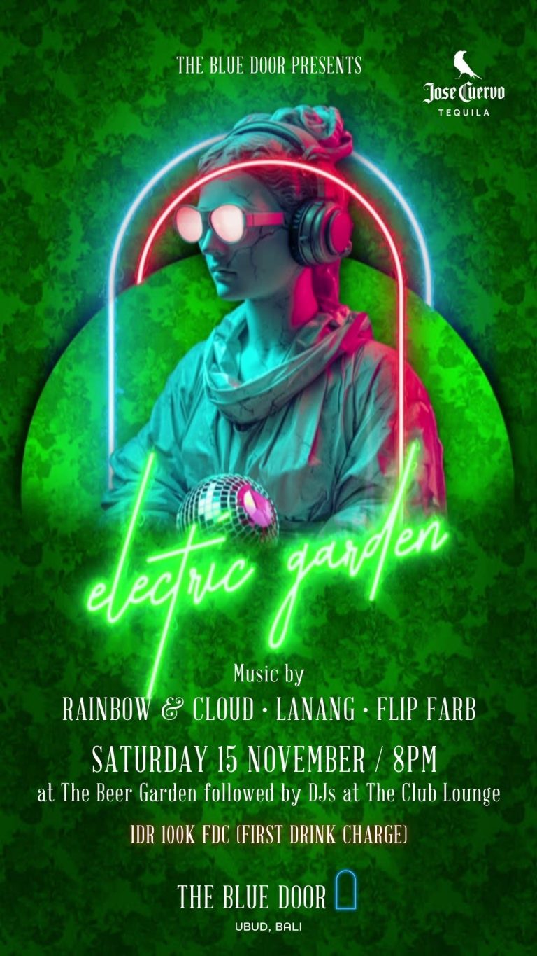 Looking for a night of electrifying music, handcrafted cocktails, and unforgettable memories in Ubud? Look no further than Electric Garden at The Blue Door! Join us this Saturday 15 November for a night that blends the energy of live music with the pulse-pounding beats of international and local DJs.