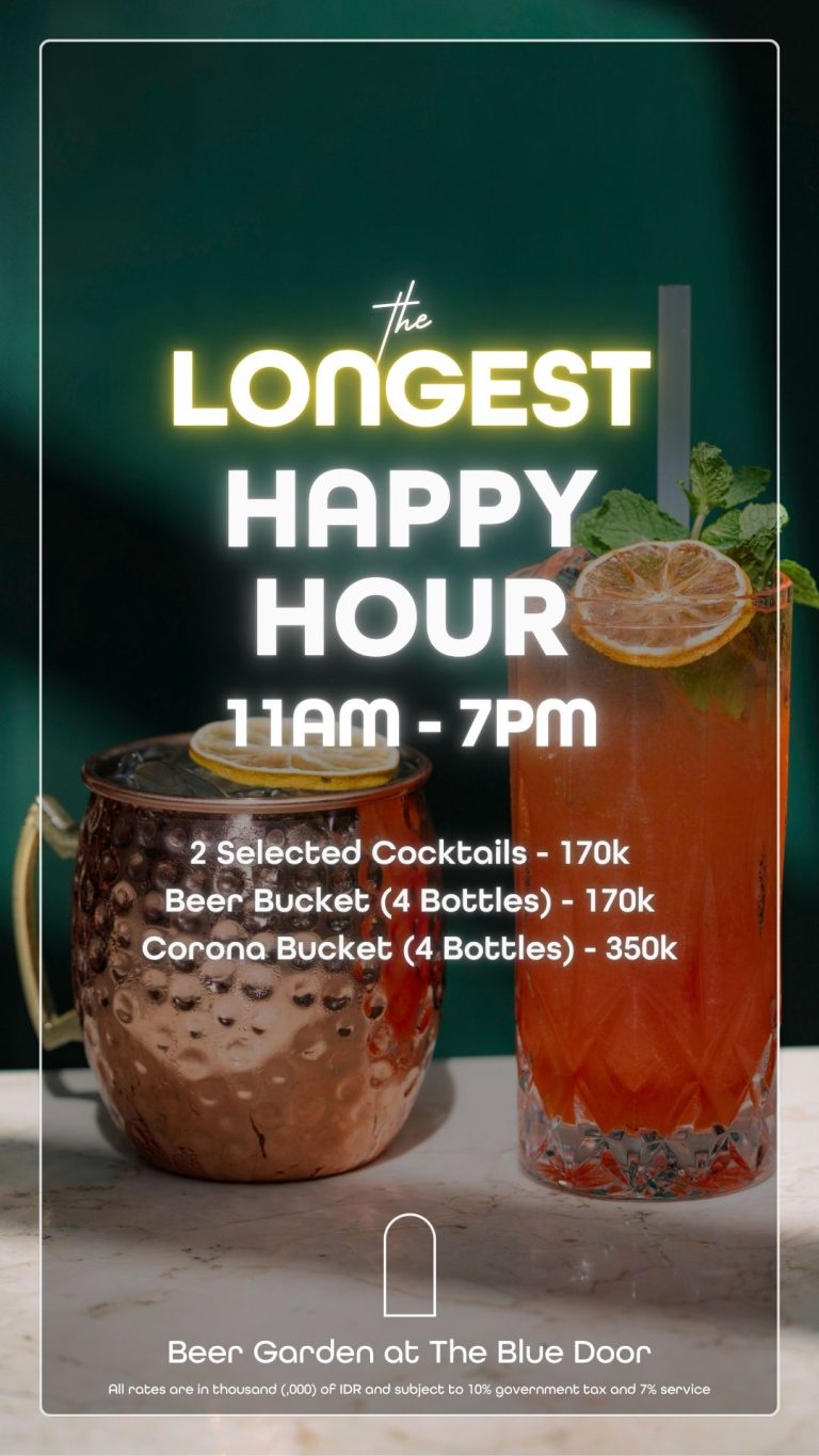Join us for the longest and most popular happy hour in Bali at The Blue Door Bar! Enjoy fantastic deals on cocktails and ice-cold beers.